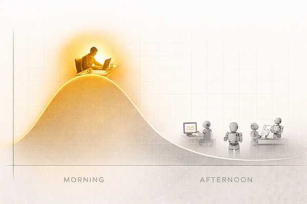 在 AI 时代,这个错误变得更致命。因为 AI 已经可以处理所有低认知成本的任务——信息检索、格式整理、数据汇总、标准写作。它无法替代的,是你的高认知峰值状态下产出的判断、洞察、连接和创造。如果你把峰值时间给了低价值任务,你就是在用最贵的东西做最便宜的事,同时把最需要你的工作留给最差的状态。