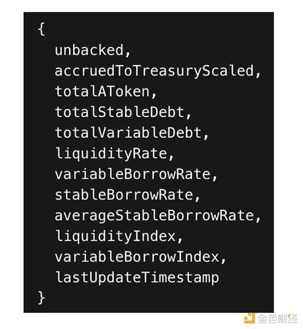 针对每种资产,通过另一代码片段获取流动性与利率基础数据,