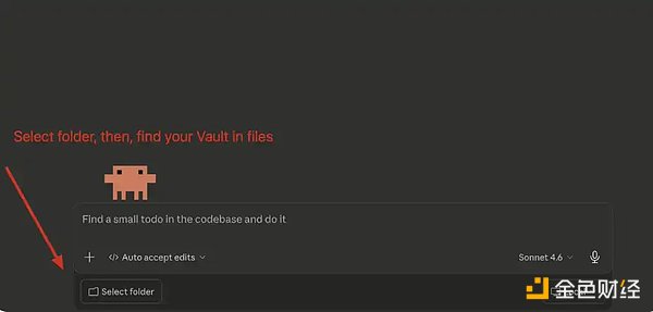 在主聊天界面中,点击「Select Folder(选择文件夹)」,然后找到你刚刚创建的 Obsidian Vault 并选中它即可。