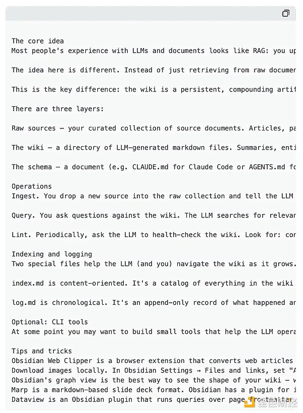 你可以在这里复制这段提示词:https://gist.github.com/karpathy/442a6bf555914893e9891c11519de94f