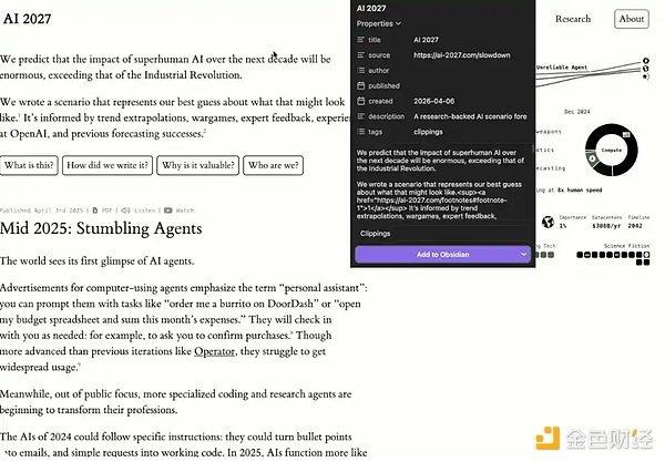 如果你想更轻松地往系统里添加数据,只需要安装 Obsidian 的 Chrome 扩展。它可以让你在浏览网页时,直接点击「Add to Obsidian(添加到 Obsidian)」,把内容一键保存进你的知识库。这会让你构建「第二大脑」的过程变得非常顺手。