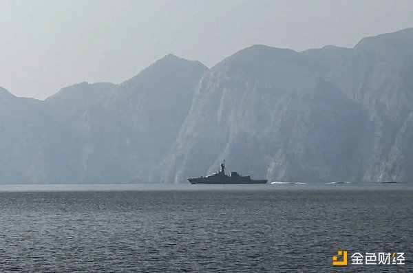 2026 年 3 月 1 日,一艘海军舰艇在霍尔木兹海峡航行。(摄影:Sahar Al Attar / AFP / Getty Images)