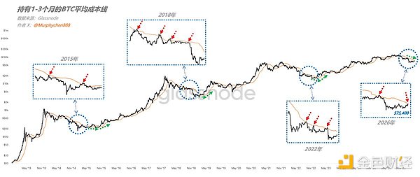 在过去的几轮周期中,通过成本基础和价格行为的关系变化,是观察BTC走出底部结构的最佳视角之一。