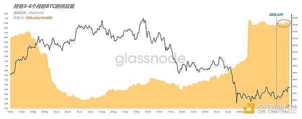 再看图3,持有3-6个月的BTC供应量中,在3月29日之后并没有明显增多。那就证明是情况2,即1-3个月的BTC在反弹中被卖了,目前还有109万枚。