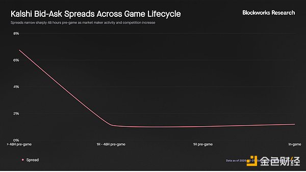 这些较高的成本,加上更稀薄的赛中流动性,意味着规模更大、更成熟的博彩玩家可能会继续偏好传统博彩公司,因为那里的定价通常可以协商,且大额交易的执行效率更高。为了提高竞争力,Kalshi 需降低费用并加强流动性激励措施,尤其是在赛中交易期间,此时交易活动较高,但深度却在下降。