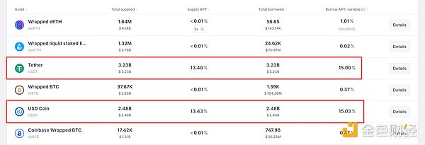黑客攻击事件之后,Aave 平台数据显示,USDT 借款 APY 一度暴涨至 14.99%,存款 APY 暴涨至 13.39%。