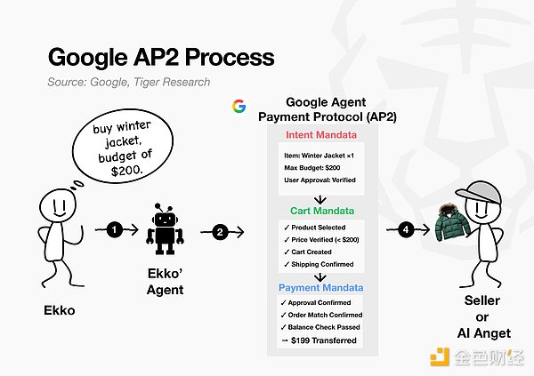 AP2(代理支付协议)是权威标准,它保证在从发现到支付的过渡时刻“谁授权了什么,以及授权金额上限是多少”。