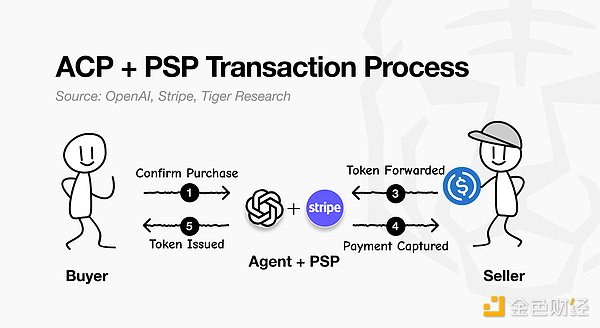 ACP 是一种开源协议,它允许代理商调用商家的支付系统并代表用户购买商品。ACP 通过四方结构授予权限:1) 买方,2) 卖方,3) 代理商,4) 支付提供商。