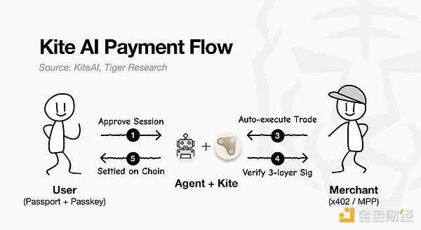 商家可通过两种途径参与:x402 或 MPP。x402 通过 HTTP 402 响应返回付款条款,并在链上进行结算。MPP 基于 Stripe 和 Tempo 构建,支持稳定币和法币。两种途径均支持通过 Kite Passport 代理进行支付。