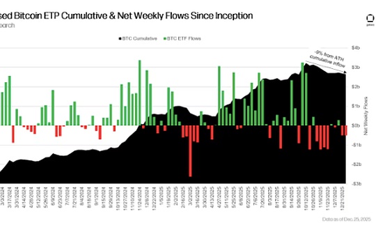 年末假期叠加期权到期的双重影响,本周加密市场彻底进入“震荡磨底”模式,波动拉扯不断却始终没有明确方向,资金交投意愿跌至冰点。比特币周线微涨0.55%基本持平,还创下7月以来的最低周度交易量,市场普遍静待新年假期结束后,交易活力与流动性的全面回归。与此同时,宏观面多空交织、机构巨头加速布局加密赛道、公链与应用层创新频发,还有多个重磅治理提案落地,为冷清的年末市场添上了诸多值得关注的跨年伏笔。