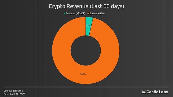 Coingecko 上列出了超过 17,000 种代币。DeFillama 上约有 5700 个协议;若我们仅统计过去 30 天内产生超过 10 万美元收入的协议,则仅有约 200 个协议或产品,占比仅为 3.5%。加密货币中真正可投资的池子,比任何人想象的都要小得多——绝大多数代币根本无法投资。